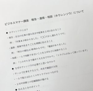 先週のSSTはビジネスマナー講座 報告・連絡・相談について取り組みました?