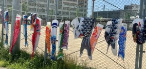 蒲生公園に喫煙所清掃に行った際に何匹もの鯉のぼりが片づけられており