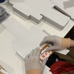 利用者さんが一つ一つ、丁寧に手で折っています。
