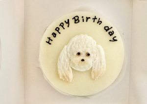 かわいい似顔絵付きのワンちゃん用ケーキをオーダーすることに?