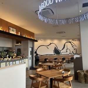 先日、みんなで余暇活動でエキスポシティにあるスヌーピーカフェへ行って来ました!