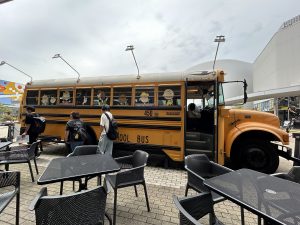 ランチのあとには特別に、カフェ前にあるスヌーピーのスクールバスに乗せてもらえる体験も‼