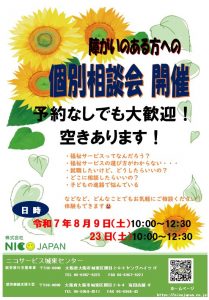 8月9日(土)と8月23日(土)に個別相談会を開催します✨