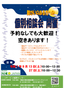 9月13日(土)9月27日(土)に個別相談会を開催します✨