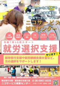 このたび、ニコサービス城東センターでは「就労選択支援事業」を開始することになりました。この事業では、就労移行支援や就労継続支援など、いくつかの働き方を体験したり比べたりしながら、ご自身に合った道を一緒に考えていきます。
