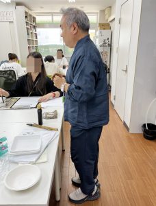 こちらの作務衣はB型職員の緒方職員の手作りだそうです✨なんと素敵な作務衣なのでしょう✨