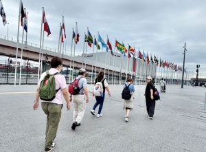 各国のフラッグの真下を写真スポットだよ~~と言いながら入場ゲートへと向かい