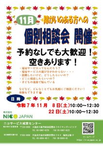 ニコサービス城東センターでは11月8日(土)と11月22日(土)に個別相談会を開催します✨