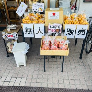 ニコプレイスの店頭では柿やミカンなどいろんな果物を無人販売しているんです✨