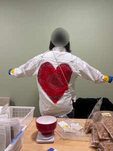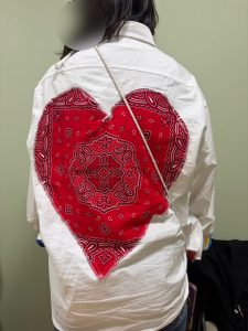 そのハートを背中にミシンで丁寧に