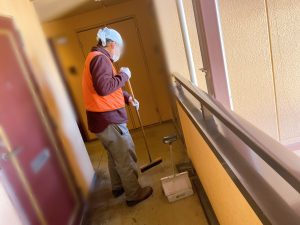 平日に配達や大きな清掃現場に出ている利用者さん達も土曜日は手が空くので、マンション清掃に入ってもらっています🧹