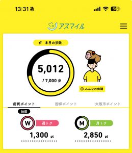 このアプリ、大阪府が出しているアプリで、ピクミンブルームほどのゲーム性はありませんが、ポイントが貯められます!そして、ポイントが貯まれば抽選に参加でき、それがPayPyaなどの実際に使えるポイントに変換できます。
