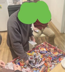 利用者さんと職員で選んだお菓子、協力企業様から差し入れでいただいたお菓子、