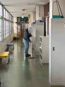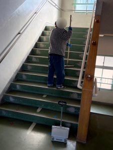 モップが床をすべる音、 階段を上り下りする足音だけ。