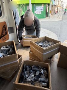 まずは事業所で、完成した金具を