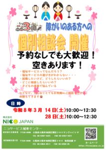ニコサービス城東センターでは3月14日(土)と3月28日(土)に個別相談会を開催します✨
