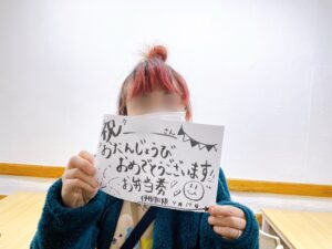 今月お誕生日を迎えられたのは、いつも一生懸命な Iさん✨(先日野田さんが投稿したブログにも頑張っている姿が写っています!)