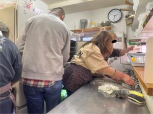この日は厨房終わりの清掃作業に抜擢された利用者の皆んなの様子を観察させていただきました!