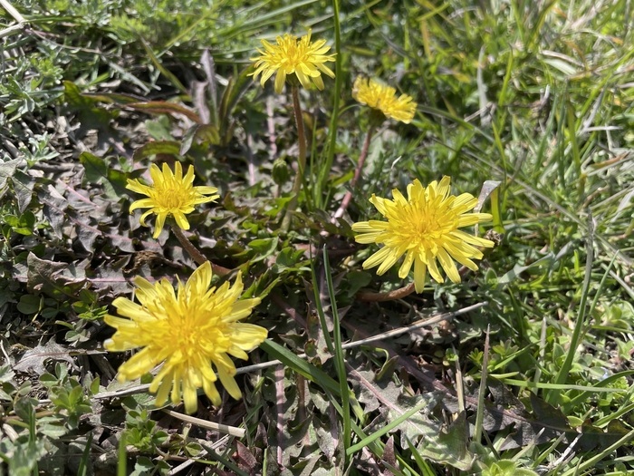 足元にはたんぽぽが咲き、