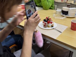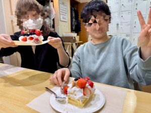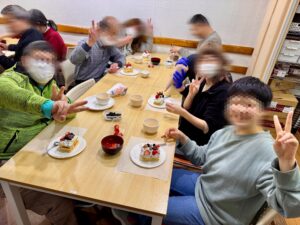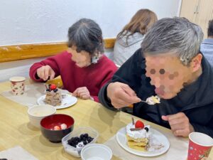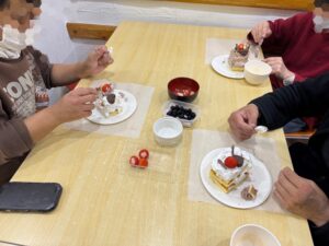 利用者ひとりひとり作られたケーキを早速召し上がられながら