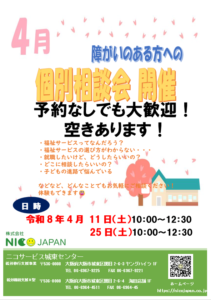 ニコサービス城東センターでは4月11日(土)と4月25日(土)に個別相談会を開催します✨